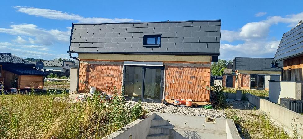 Das Haus ist noch nicht ganz fertiggestellt, aber mit tollem Pool und 2-geschoßig mit einem Keller ausgeführt.